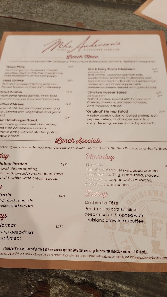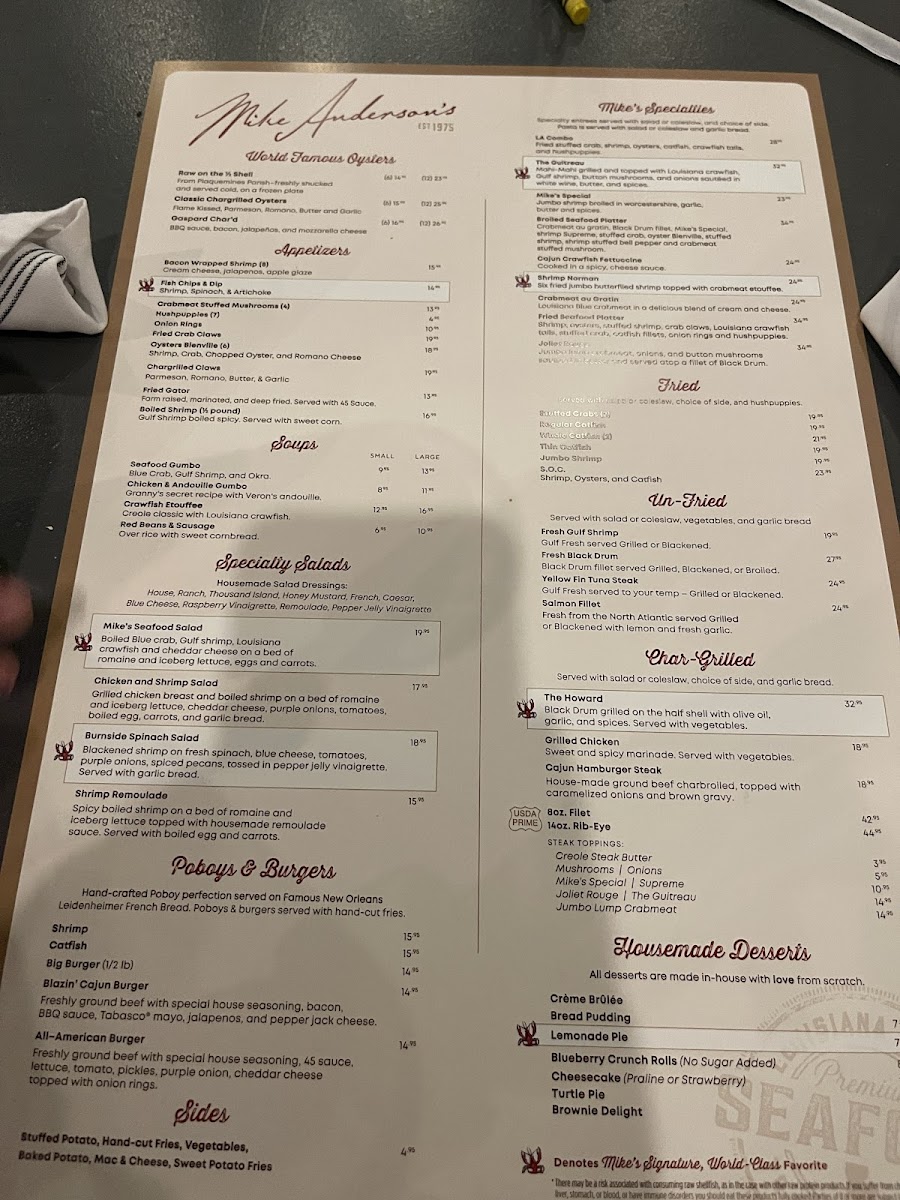 Welcome to Mike Anderson's - Prairieville, a culinary gem located at 16400 Airline Hwy in Prairieville, Louisiana. Esteemed as a vibrant dining destination, this restaurant excels in delivering fresh, mouthwatering seafood and exceptional service. Customers rave about their experiences, particularly praising the chargrilled oysters and broiled seafood platter, which have garnered standout reviews for their quality and flavor.